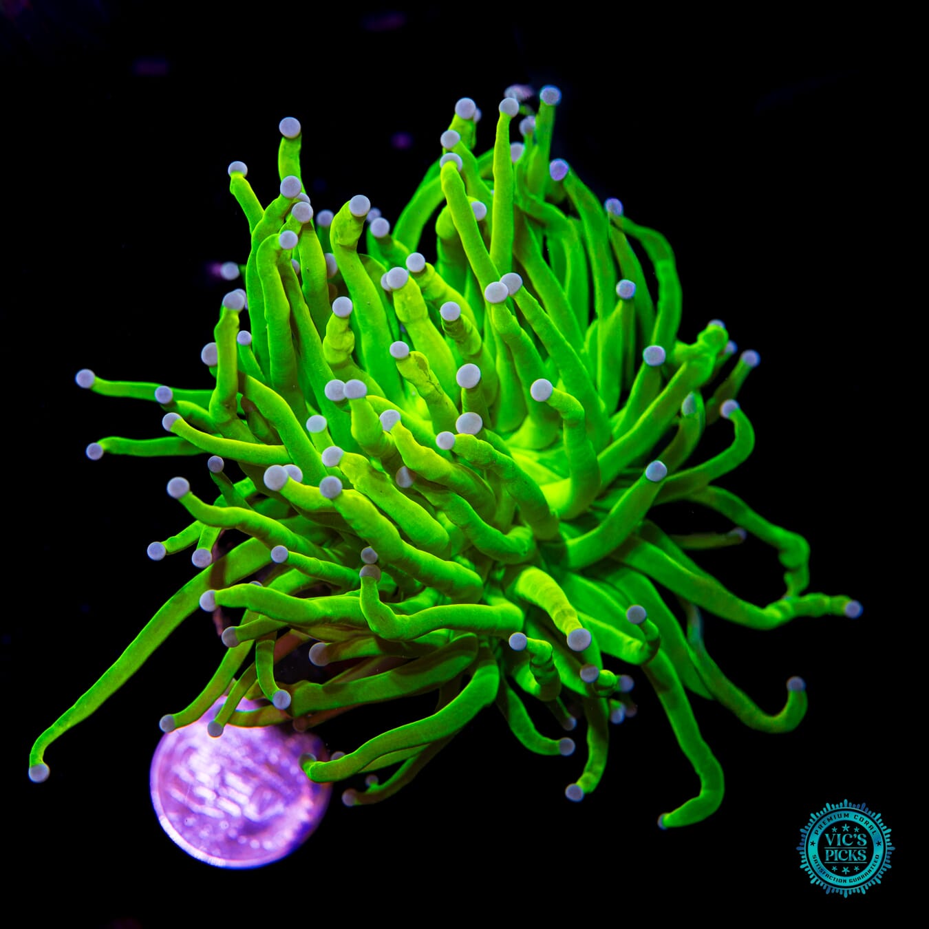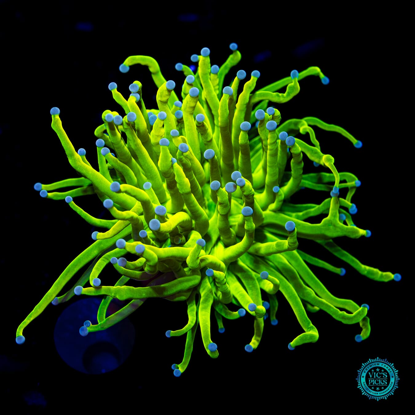 3.5" WYSIWYG and fully conditioned to life in a reef tank! Yellow can be hard to come by in a reef tank and freaking blinding neon yellow is even that much more rare! And when the polyps fully extend its mind blowing! Besides the famous WWC Holy Grail Torch, this is the brightest and one of the most ridiculous torches out there!