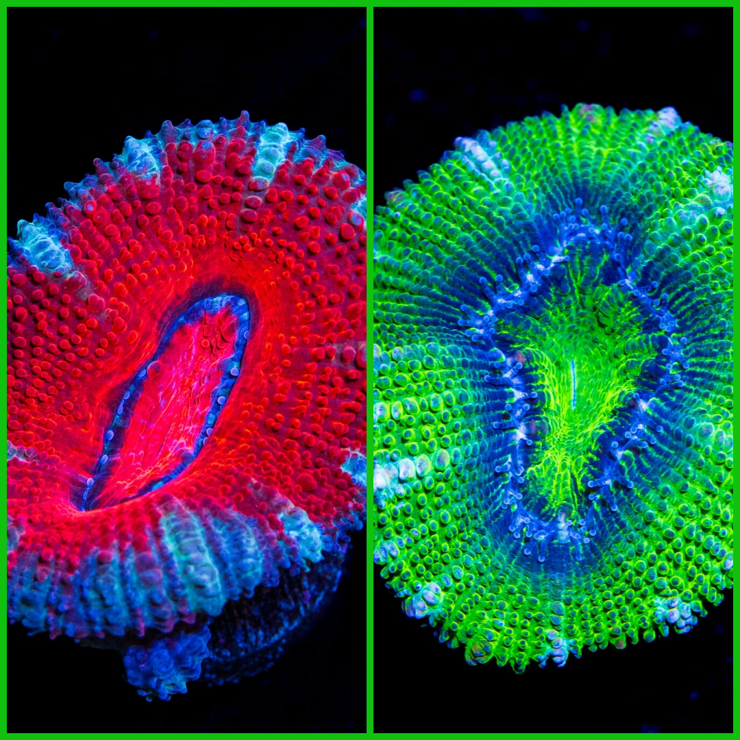 **THESE ARE NOT A WYSIWYG FRAGS** You will receive a healthy, 1-2 polyp frag of a GREEN AND A RED colored Aussie Lord.**